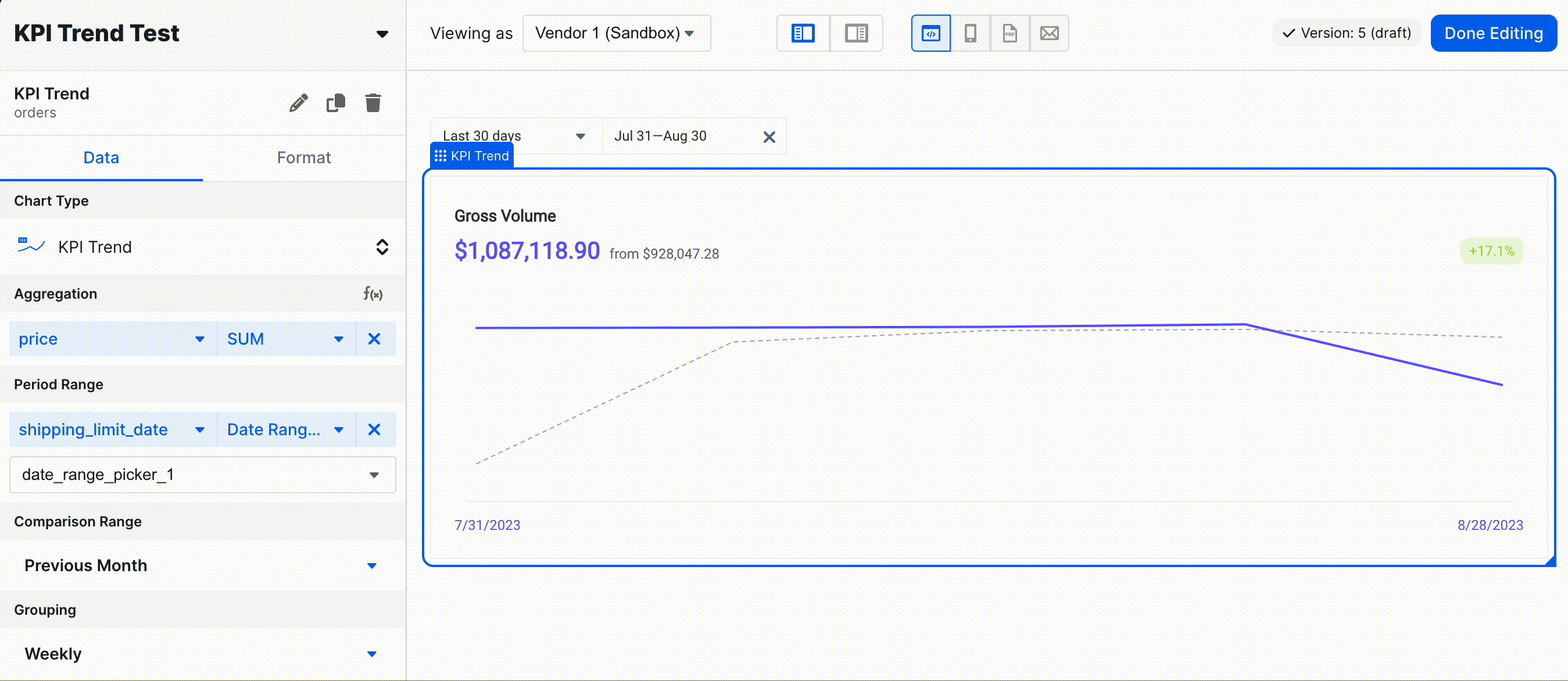 Hide Trend Lines is toggled on.- Subtitle: This subtitle will appear below the title of the KPI.