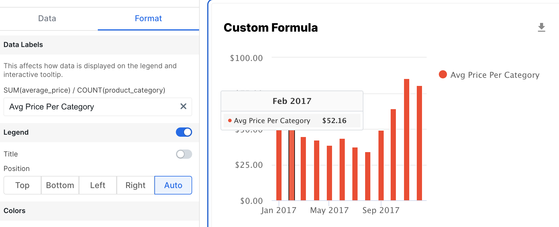 To use a custom formula, go to the Data tab and click on the “fx” button