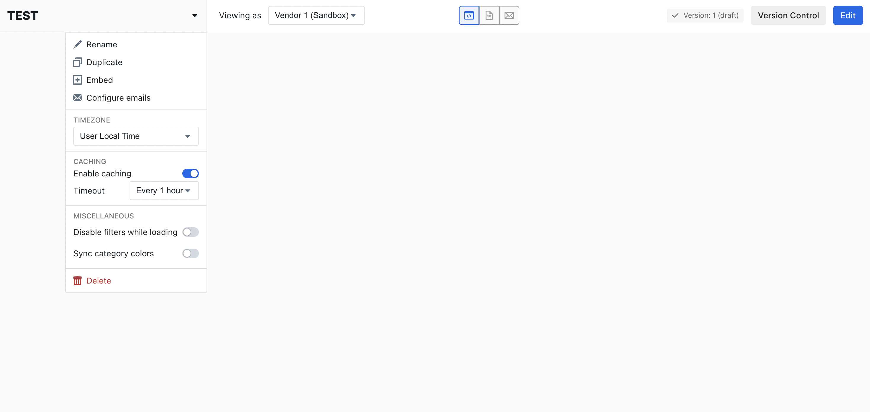 There is a button in the top right corner of the dashboard editor that requests new data for your data panels. Note that, because your in-app and embedded dashboards share the same cache, refreshing the data via this button will refresh the data for your users as well.