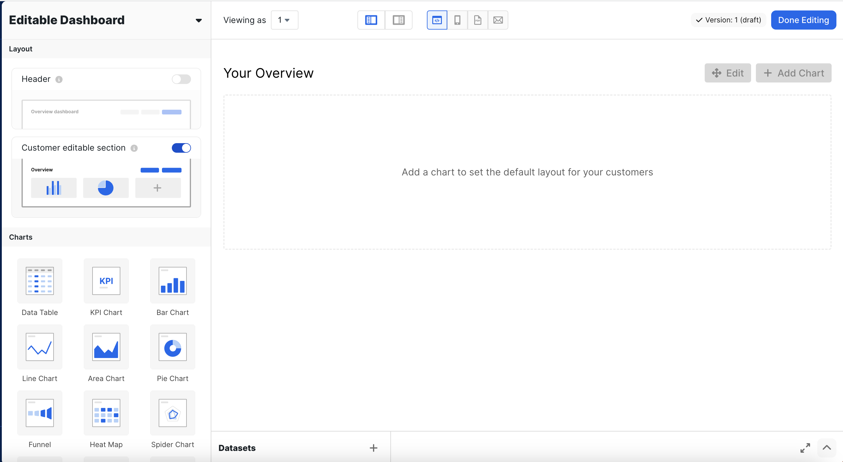 Click ‘Add a Chart’. Now, you can begin creating the chart, exactly how you would with the traditional dashboard experience.