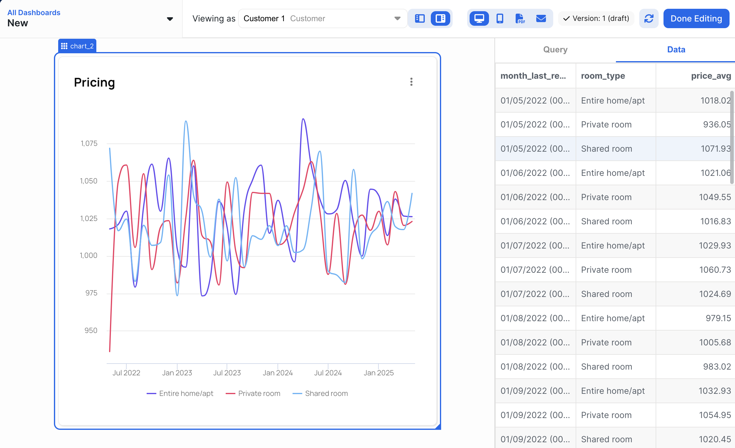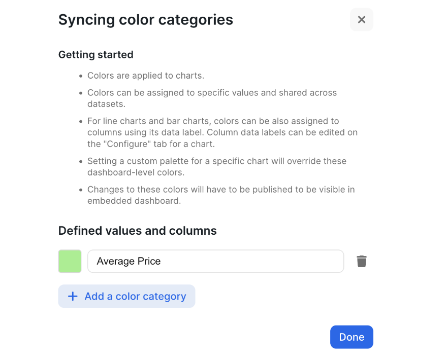 - Column colors can only be set for line charts and bar charts.